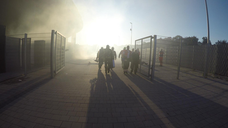 Selbstverständlich wurde auch das Zusammenspiel der einzelnen Organisationen auf die Probe gestellt. Im Rahmen dieser Übung kamen alle verfügbaren Einheiten zusammen: Feuerwehr, sowohl Freiwillige als auch Berufsfeuerwehr, Rettungsdienst, Polizei, Ordnungsdienst, Stadionbetreiber und Vertreter des Vereins.